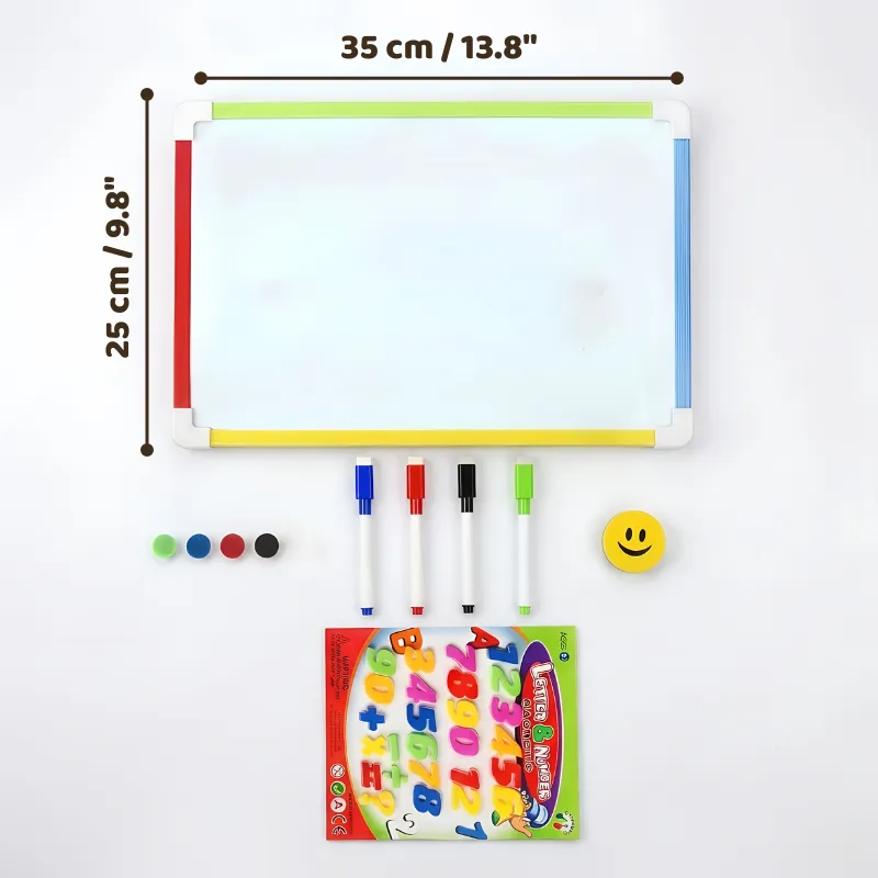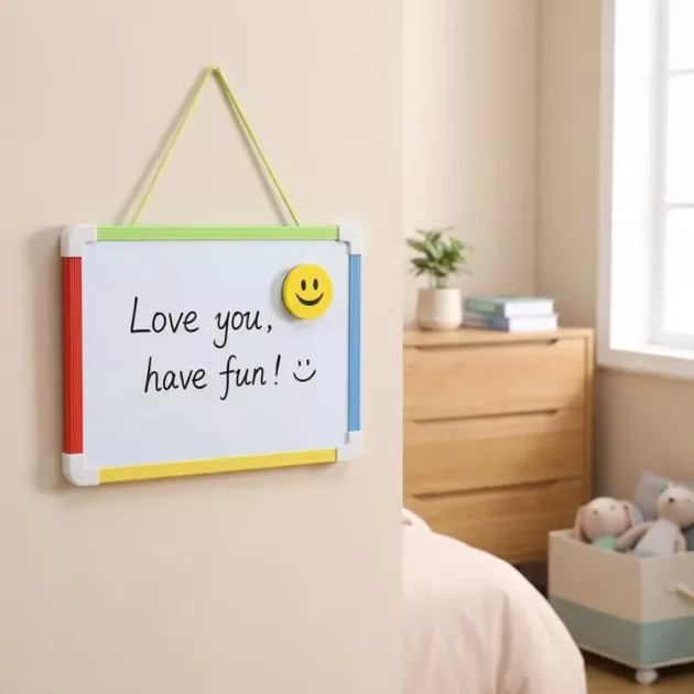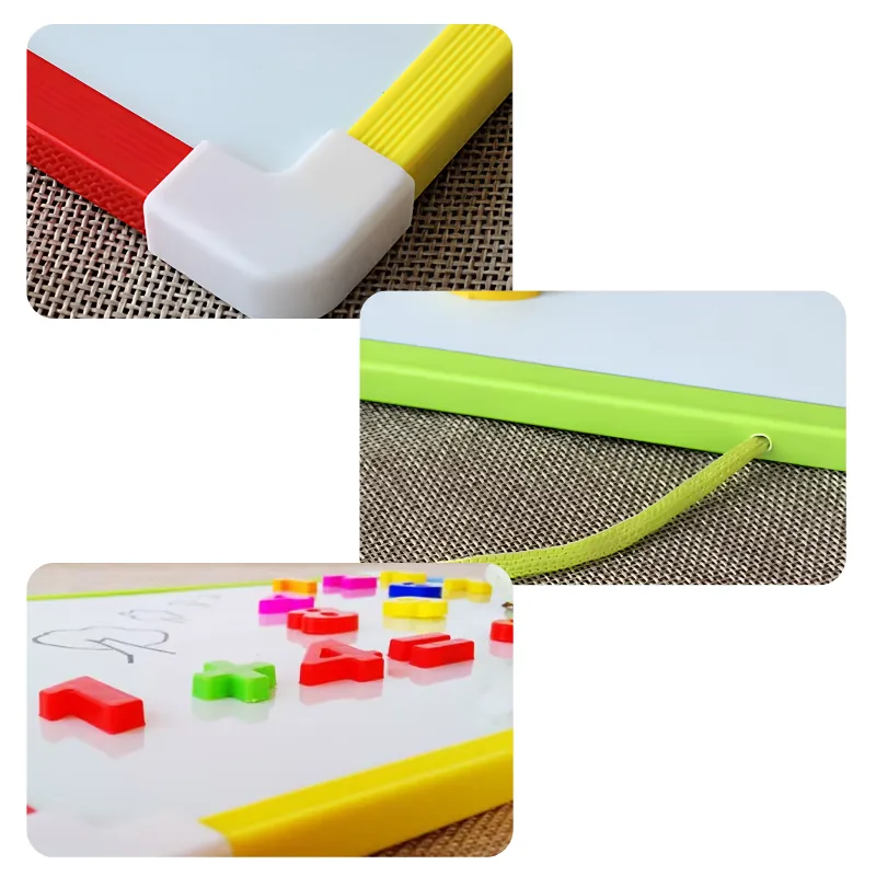 Den färgglada designen inspirerar till kreativitet när barn ritar eller löser tal. Magnetiska delar hjälper barn att öva matte, bokstäver eller klottra meddelanden. Häng enkelt upp tavlan i vilket rum som helst för påminnelser eller lek. Rena ytor innebär ingen röra eller slösat papper varje dag.