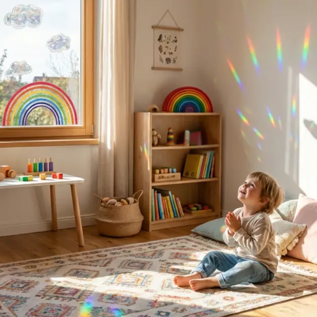 Glädjefull atmosfär - Rummen känns mer glada när regnbågsfärger fyller dagen. Morgnar blir spännande äventyr som väcker kreativ lek.
