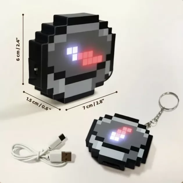 Supergullig pixelkonst-look! Jag har den på min ryggsäck och min lillebror vill också ha en. Älskar att jag inte behöver köpa batterier till den.