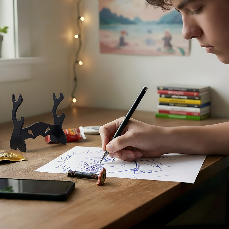Ordning på skrivbordet - Den medföljande hållaren håller pennan på en speciell plats. Skrivbordet förblir prydligt, och ditt barn vet alltid var skrivverktyget är.