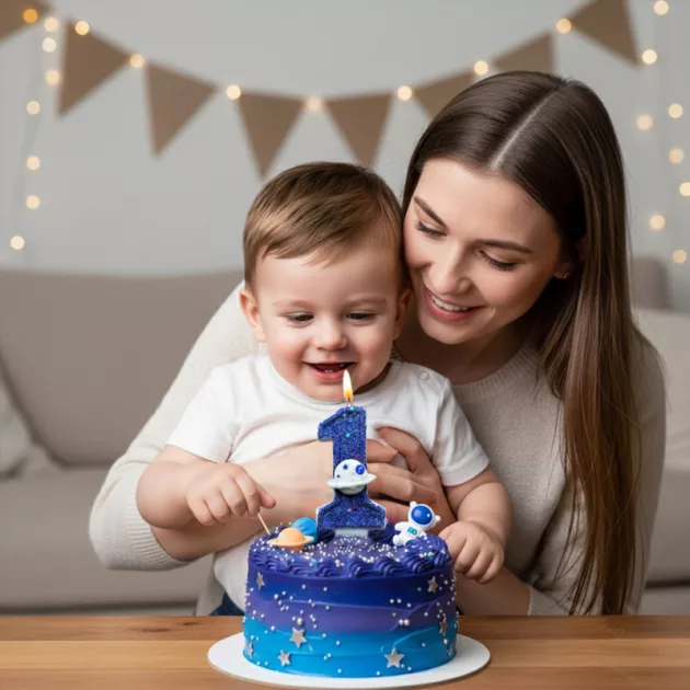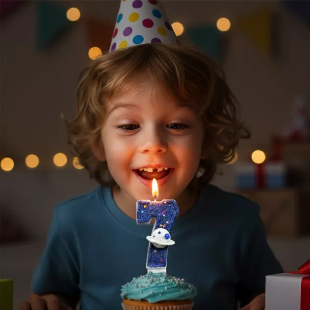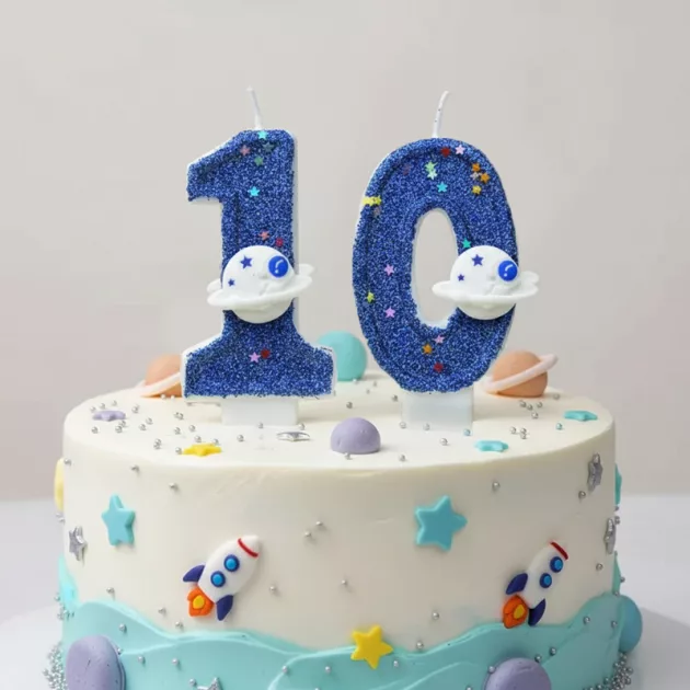 Min son blev överlycklig när han såg sin tårta med detta ljus! Rymddesignen såg jättesnygg ut på alla bilder och det var lätt att tända.