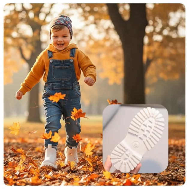 Halkfri design - Greppvänliga sulor hjälper till att förhindra halka på våta ytor. Barn leker glatt utan att oroa sig för oväntade fall.