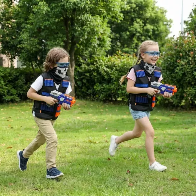 Fullständig säkerhet - Skyddande mask och glasögon skyddar ansiktet från flygande pilar. Föräldrar kan slappna av när de vet att ögon och hud är säkra utomhus.