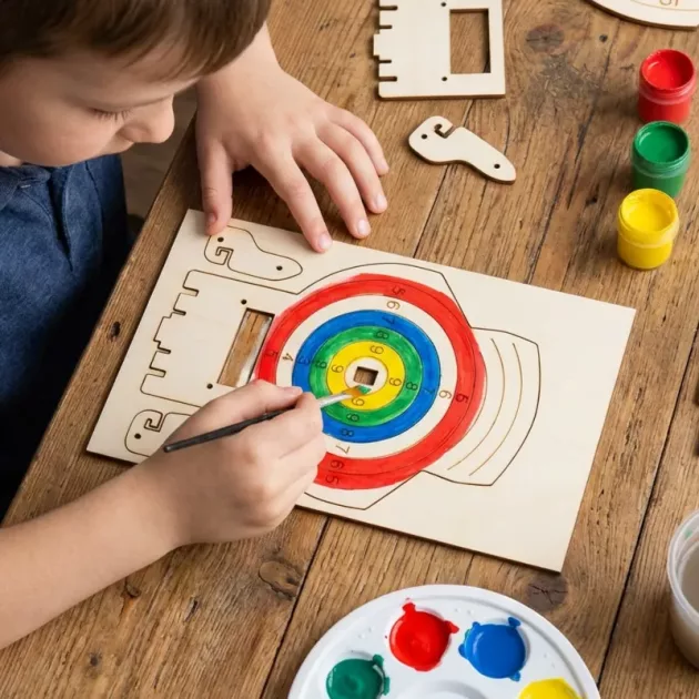 Träbyggsatsen var perfekt för en regnig eftermiddag. Jag tyckte om att måla varje del efter att ha satt ihop den. Alla bitar passade fint, och jag lärde mig att vara tålmodig.