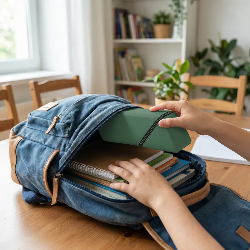 Platsbesparande lösning - Den smarta vikbara strukturen får lätt plats i skolväskor. Den öppnas brett för att rymma många saker utan att ta extra plats.