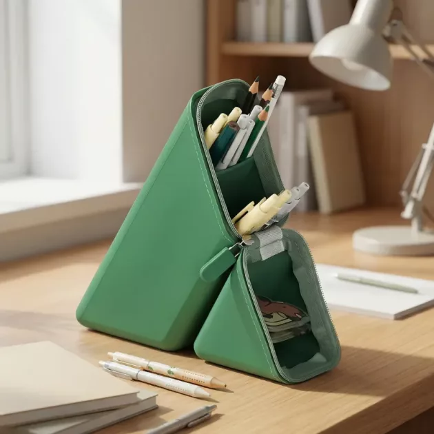 Båda mina barn använder detta hemma och i skolan. Det håller allt på plats, och jag slipper plocka upp pennor från golvet.
