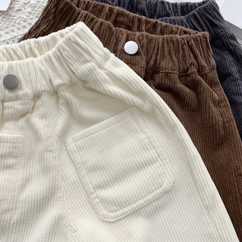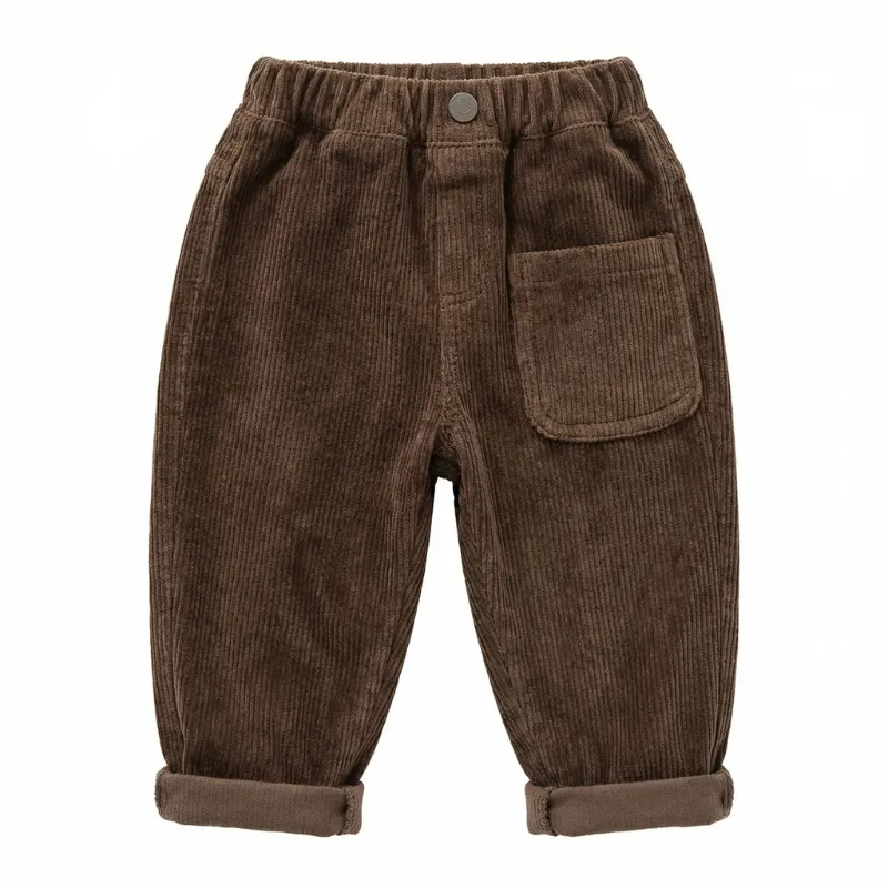 Kalla dagar är inget bekymmer när komfort alltid kommer först. Mjuk manchester håller benen varma vid varje lekfull stund utomhus. Lös passform ger enkel rörelse vid varje äventyr i parken. Enkel stil passar till alla kläder och gör påklädningen snabb och stressfri.