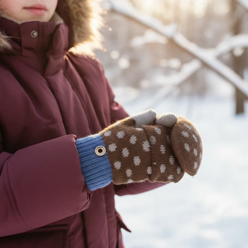 Vi går till busshållplatsen varje morgon och min dotter har aldrig varit kall om händerna. Hon gillar att ha dem på även inomhus ibland!