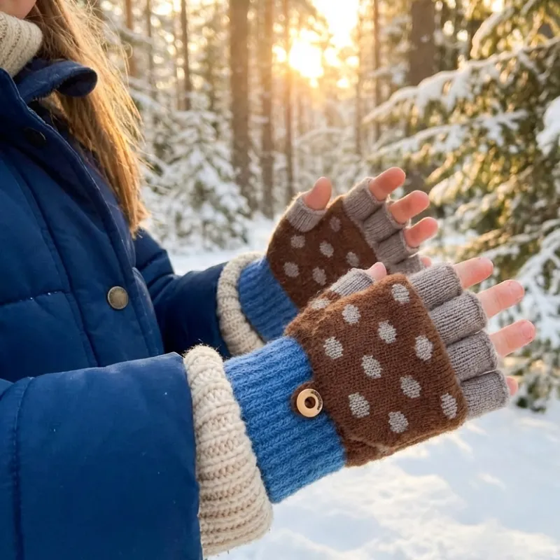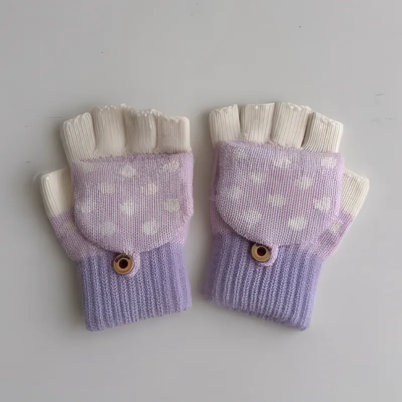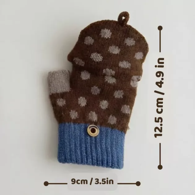 Min dotter älskar dessa vantar eftersom hennes fingrar kan vara fria när hon äter snacks utomhus. Supergulliga och så mjuka inuti. Håller henne varm på våra promenader.