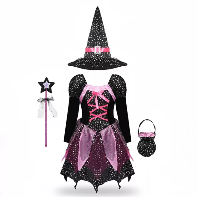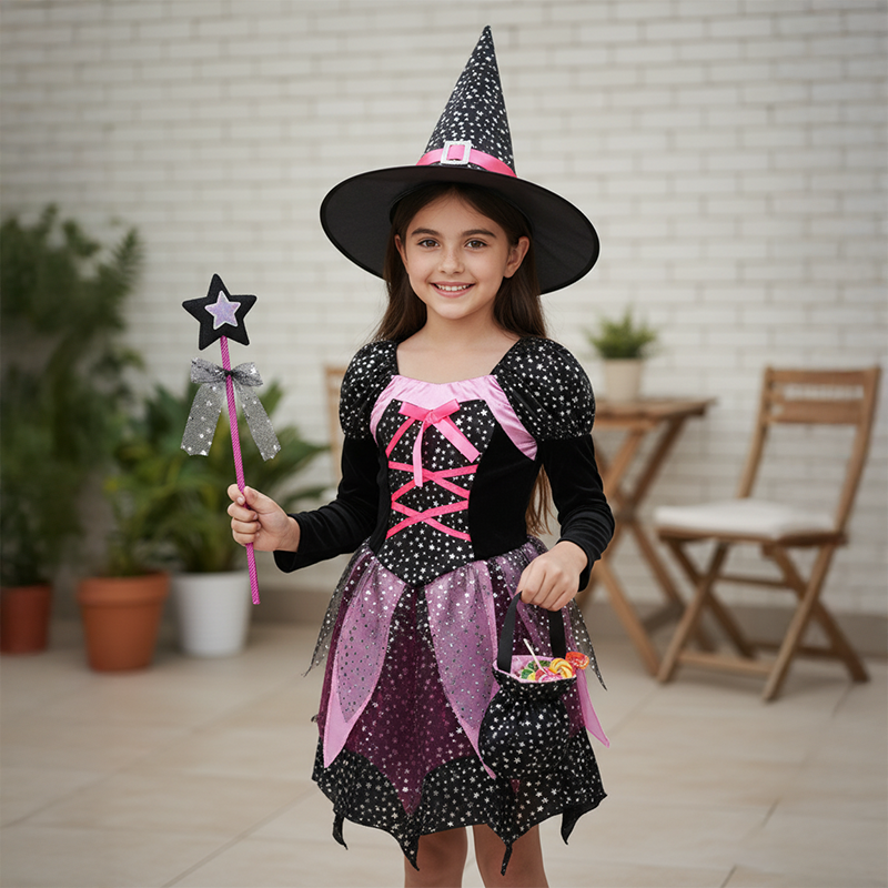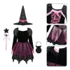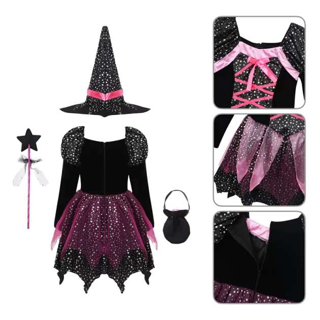 Trollkarlkostym Häxklädsel Set med Trollstav för Flickor