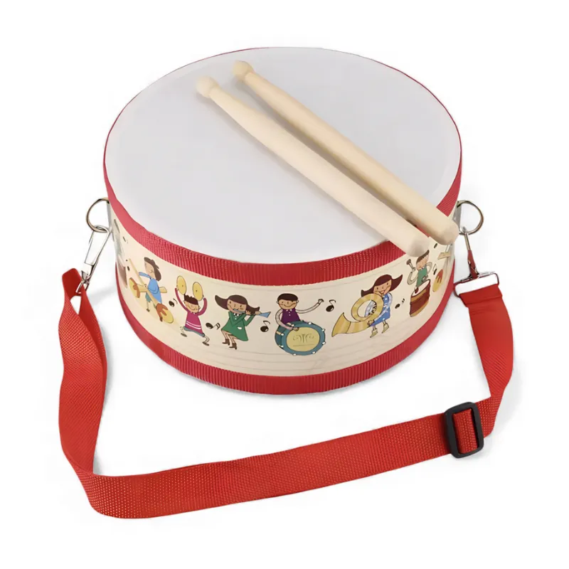 Trätrumma med pinnar, pedagogiskt musikinstrument för barn