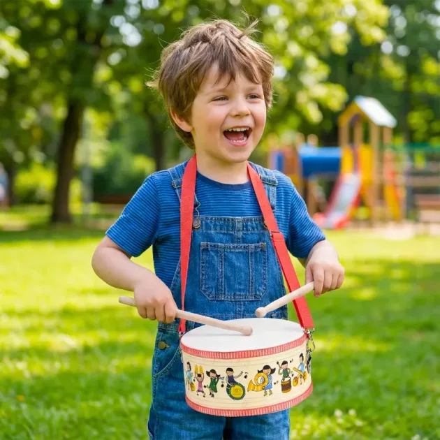 Min brorson spelar på trumman hela eftermiddagen och skapar olika ljud. Jag gillar att den är slät och skonsam mot hans händer.