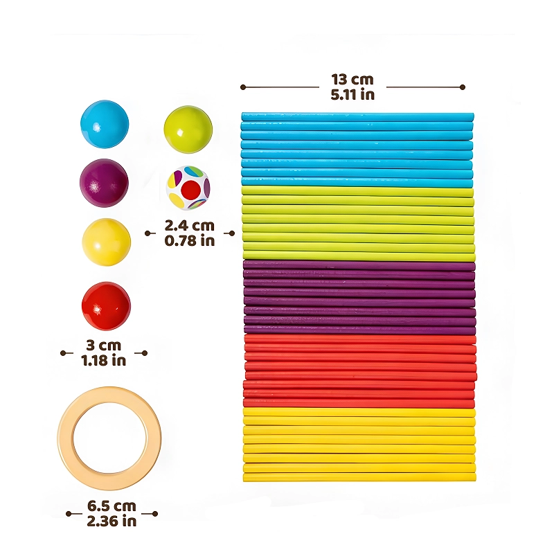 De starka färgerna gör spelet glatt. Mina tvillingar älskar att sortera pinnarna efter färg innan vi ens börjar spela. Familjekvällarna är bäst.