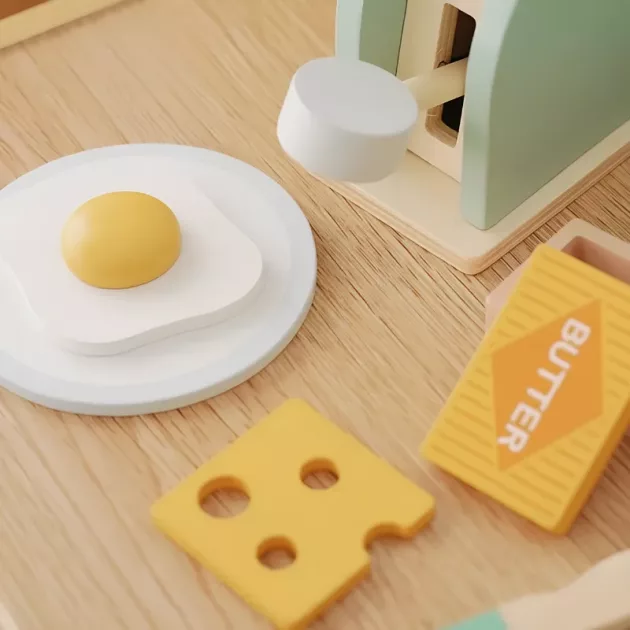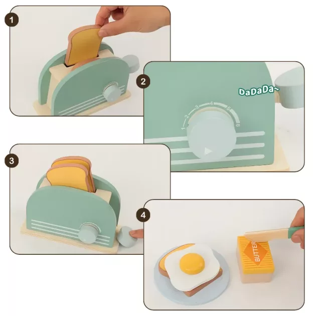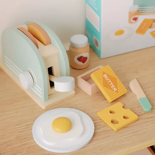 Vi gillar leksaker utan skärmar, och denna brödrost gör jobbet. Min dotter bjuder in sina vänner på ’rostfester’ på morgonen.