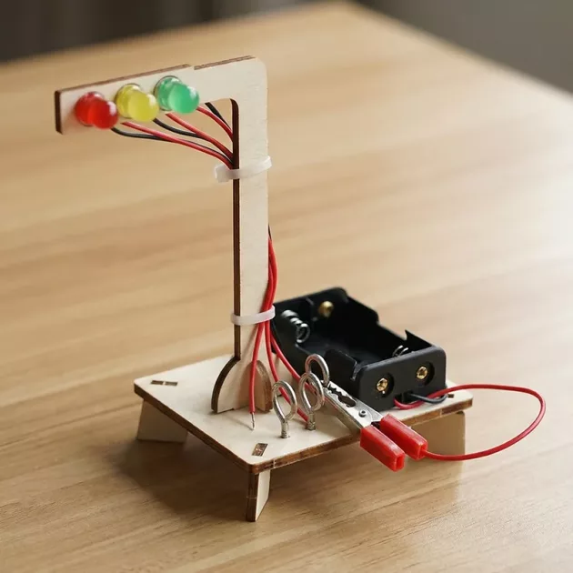 Vi byggde ihop det efter skolan. Min son gjorde de flesta stegen själv och förstod varför lamporna skiftade. Väldigt lärorikt för nyfikna barn.
